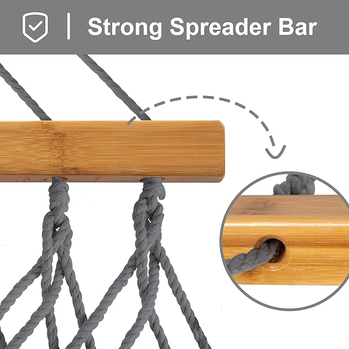 SUNCREAT Double Outdoor Hammock, Polyester Rope Hammock with Strong Spreader bar, Gray