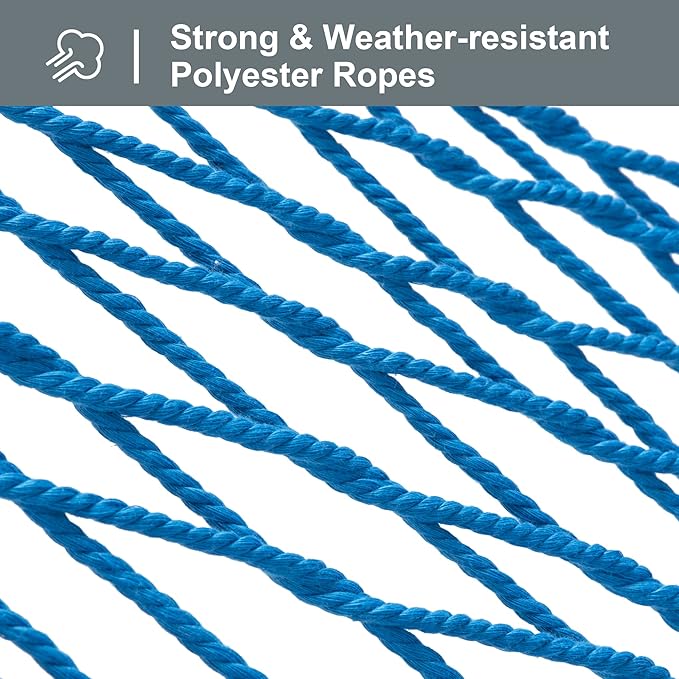 - Upgraded 30% Thicker Ropes: The upgraded strong polyester ropes are hand-woven with comfortable, long-lasting threads woven by the hammock artisans, 30% thicker than before. When you lay on the rope hammock, it helps you relieve stress and provide better blood circulation throughout the body. And thanks to the well ventilated mesh, your back won’t be sweaty anymore