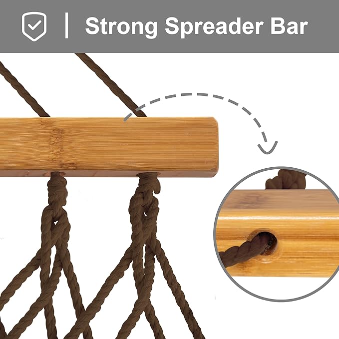 - Strong Spreader Bar: 55 inch spreader bars with marine varnish to seal are stylish and weather resistant. It features countersunk spreader bar holes which could reduce the friction between the rope and spreader bar