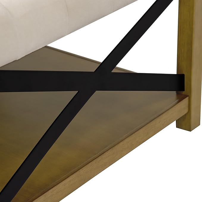 HomePop Tufted Ottoman with Wooden Storage - Cream