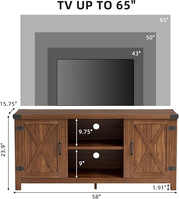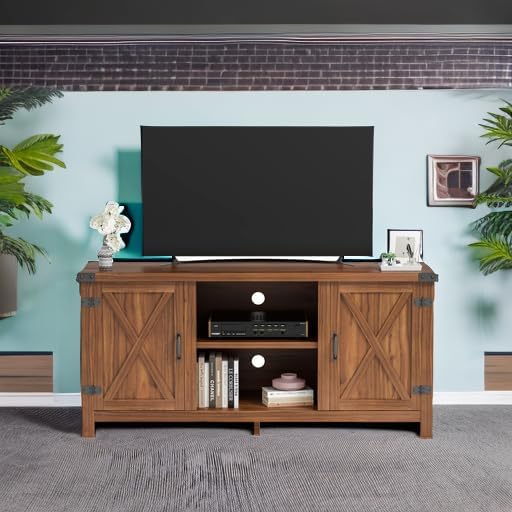 JUMMICO TV Stand, 65 Inch TV Farmhouse Entertainment Center with Double Barn Doors and Storage Cabinets, Console TV Table Media for Living Room, Bedroom (Walnut)