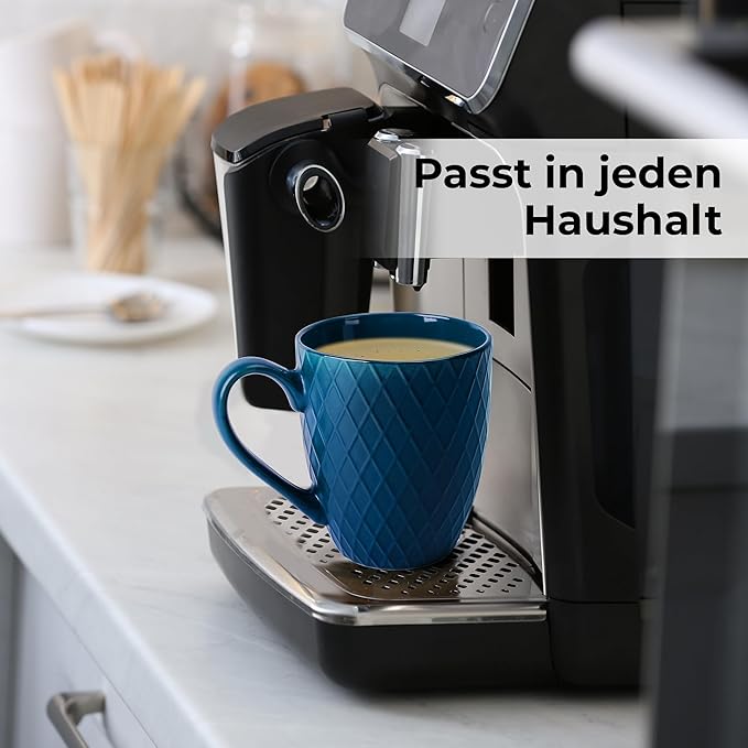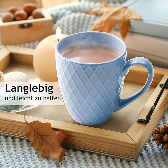 MIAMIO - Coffee Mugs set of 6 / Coffee Cups - 6 x 14 Oz Ceramic Mugs - Large Coffee Mugs - Microwave & Dishwasher safe - Palmanova Collection (Blue)