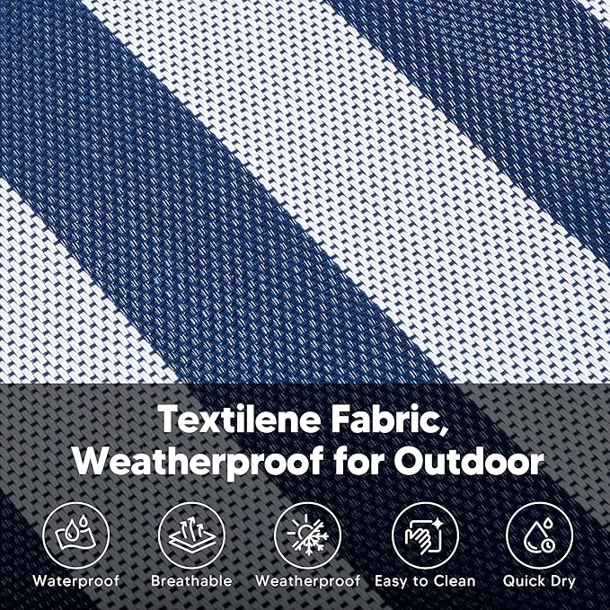 - Material Textilene, Steel, Hardwood, Poly-cotton : Maximum Weight Recommendation 450 Pounds