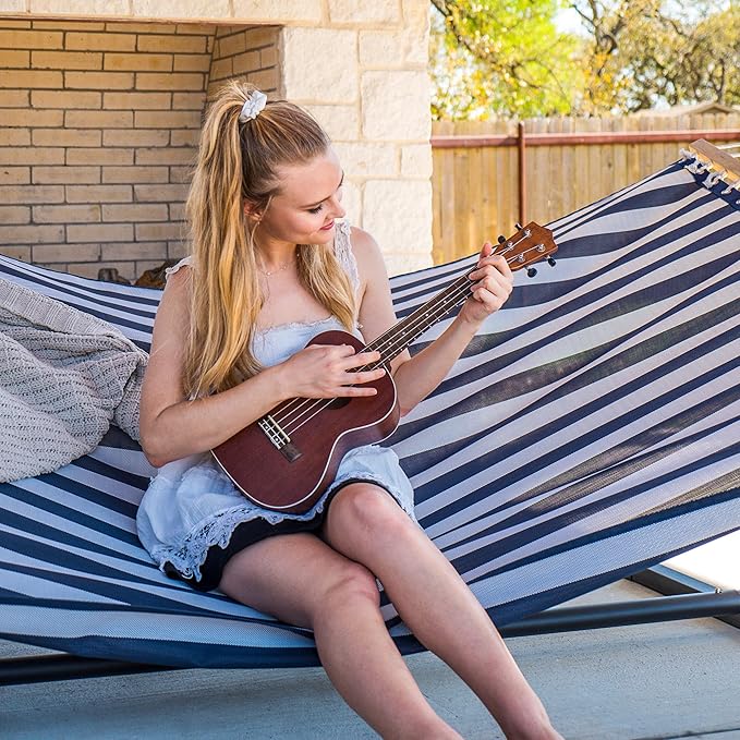 SUNCREAT Double Hammock with Stand Included, Outdoor Portable Hammock with Stand, Blue