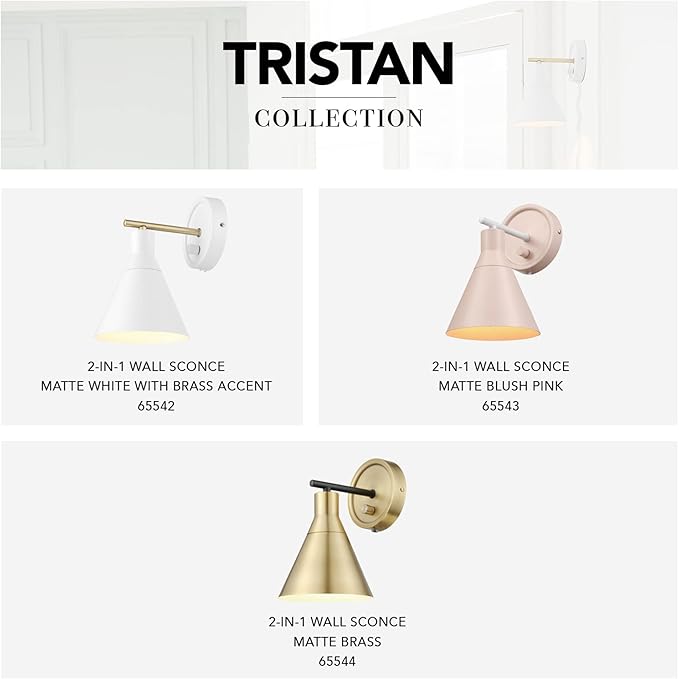 - LOFTY CHIC: combining a modern finish with a glamorous but functional design, the Tristan Wall Sconce utilizes a matte finish and clever accent color to complement all décor styles