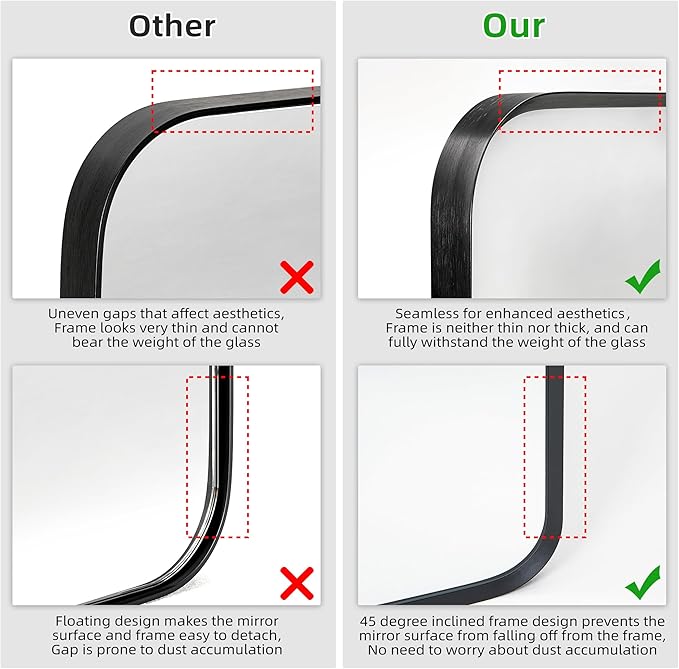 - High-quality material: With premium glass, the mirror is anti-distortion, which is perfect in reflection. The well-designed packaging ensures that the rounded corner mirror is delivered safely