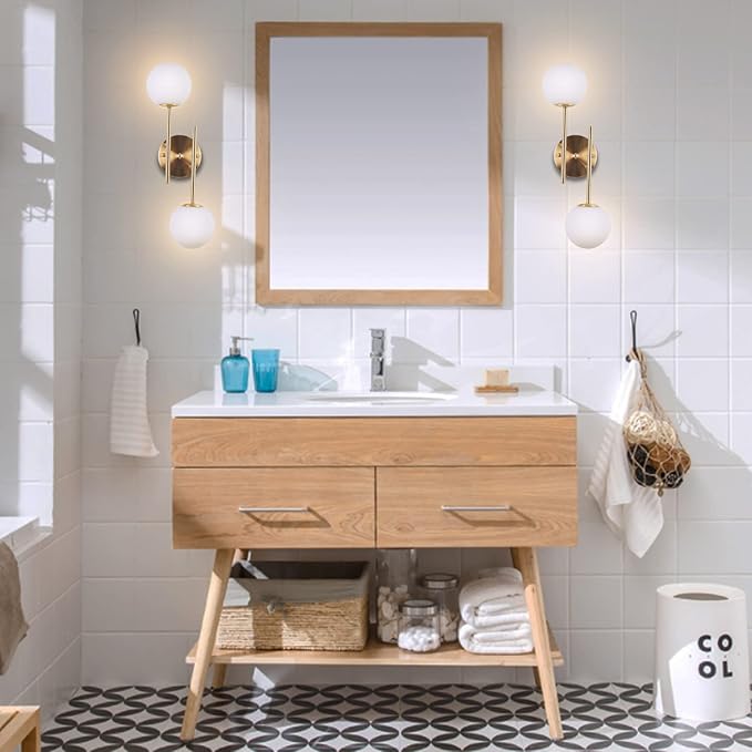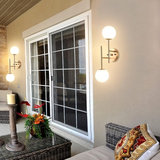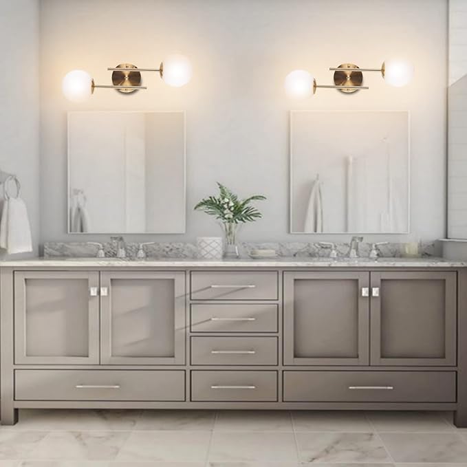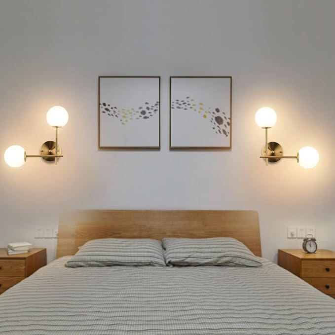 - 【2-lights Modern Ball Wall Light】Crafted from sturdy metal , featuring brushed brass finish with 2 white globe glass Lampshade, BYOLIIMA gold globe Wall Sconce no need to worry about getting oxidation and color fading. Simple and elegant,Perfect for mid-century decoration styles and combines the contemporary and retro style.