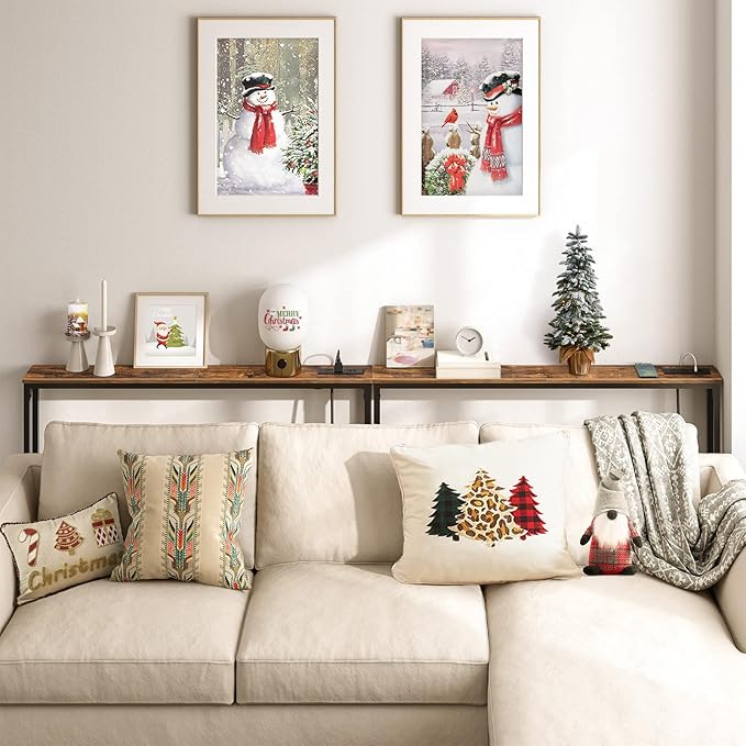 - Behind Couch Table with Outlets: The narrow console table comes with built-in 2 plug outlets, 2 USB ports and a 59" long power cord. With all the functions required for charging, the skinny sofa table is ideal for your mobile phone, laptop, desk lamps or tablets