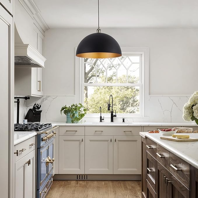 Vintage Pendant Light,Industrial pendant light,chandelier17.72 "Industrial Dome Pendant Light black and gold finish lighting fixture line length 78.74" Kitchen island, bedroom, hallway,farmhouse