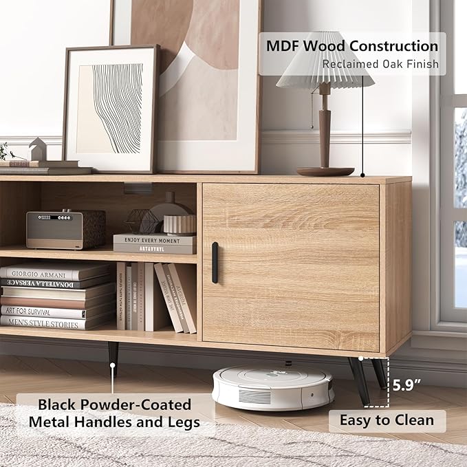 AUXSOUL Mid Century Modern TV Stand - 70" for 75" TV, Wood with Storage, Entertainment Center for Living Room & Bedroom, Media Console, Oak