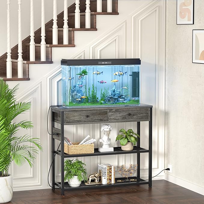 - Elegant Style & Multiple Functional - The narrow console table for entryway can fit any spot. The wood veneer looks elegant. Totally 2 drawers and 3 open tiers for display and storage. You can use it as an entryway table with shoe storage, couch table, foyer table, front door table, TV console table for living room, gaming console table, aquarium stand, plant stand, window table, coffee bar table, hallway table.