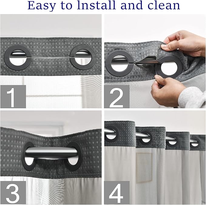 - ✅[ Built in Rings & Super Easy to Install]:Convenience is the key! Smart hook free design,This ringless shower curtain makes it easy to hang your gray waffle shower curtain on the rod within seconds!