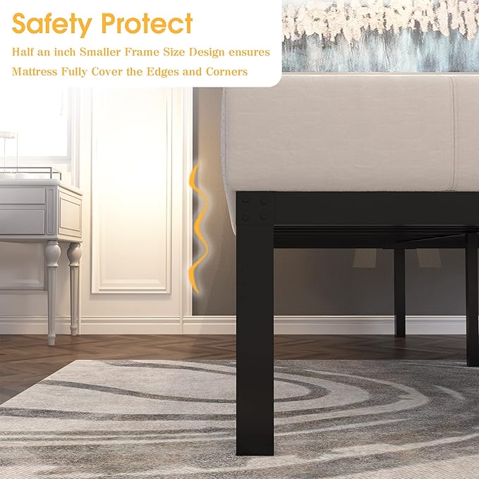 - ✔ Super Heavy Duty: Our Bedframe has the Weight Capacity of 4000lbs, Keep your Mattress and Bed Away from Rocking; Reinforced Structure with Steel Slat Support, Mattress fully cover the frame.