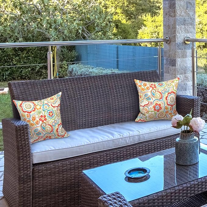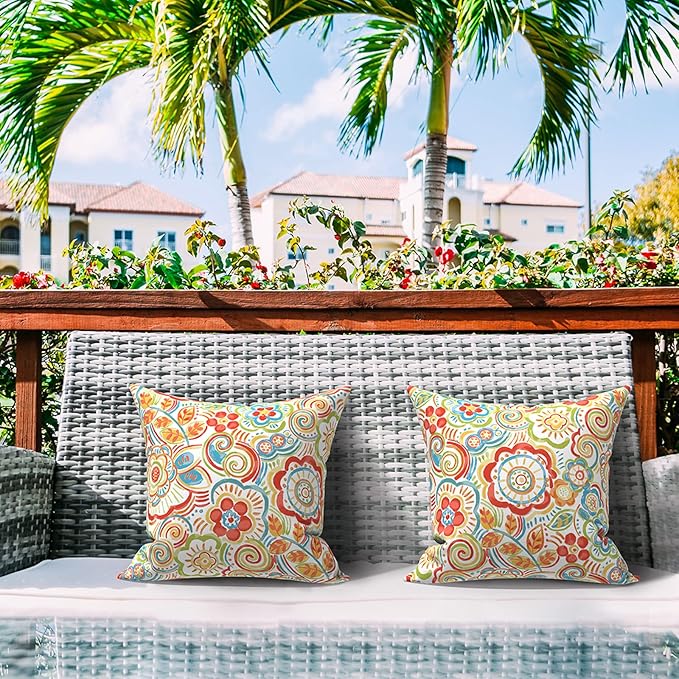 LVTXIII Outdoor Throw Pillow Covers 18 x 18 Inch, Covers ONLY Modern Paisley Pattern Decorative Square Toss Pillow Case Pack of 2 for Home Patio Garden Sofa Bed Furniture, Flower Multi