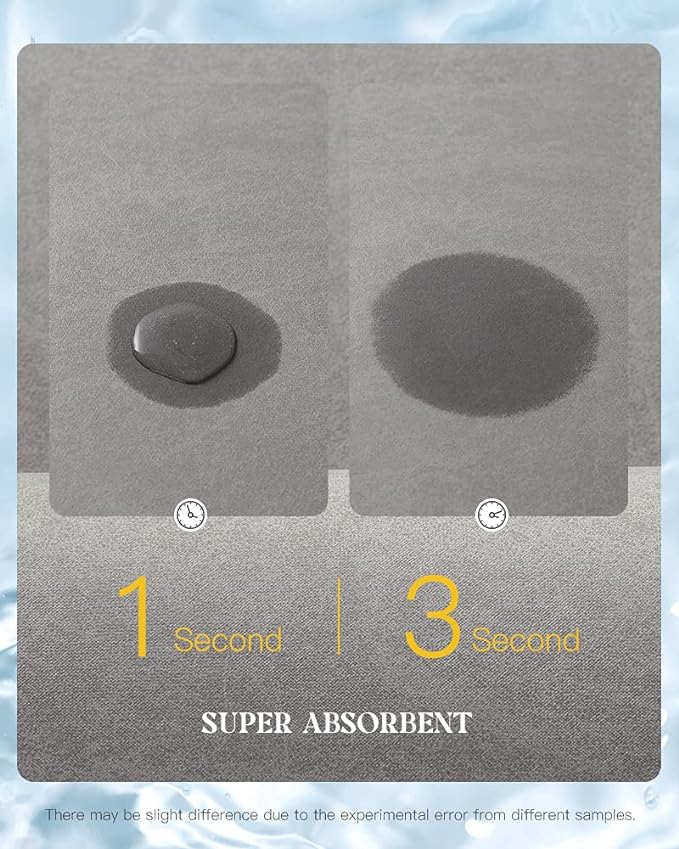 - ABSORBENT :This is a soft version of the diatomaceous earth bath mat. The bathroom rug can suck up dripping water when you come out from bathtub or shower.Faux suede surface dry quickly.Always keep your bathroom clean and tidy