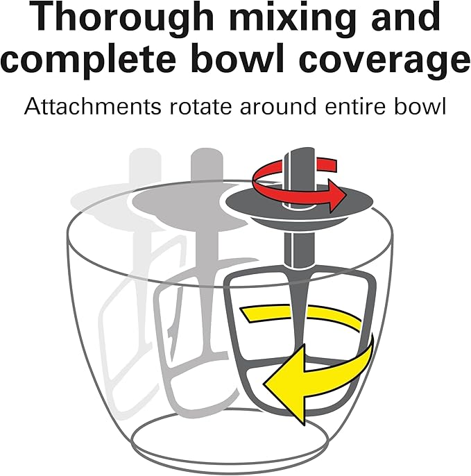 - THOROUGH MIXING AND COMPLETE BOWL COVERAGE. As you mix, each stand mixer attachment rotates around the entire bowl as it spins at your selected speed. This planetary mixing action ensures that ingredients are mixed thoroughly and provides complete bowl coverage.