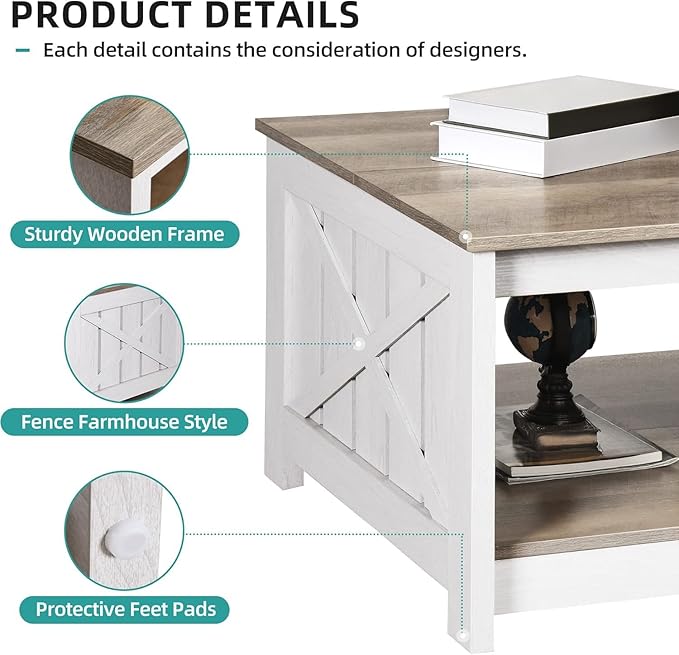 - MODERN & FARM STYLE- Our coffee table combines the natural grey wash with grayish-white; the minimalist design also adds unique rustic aesthetic to your room; square coffee table can complement any modern or rustic rooms, highlighting your personal taste and ideals