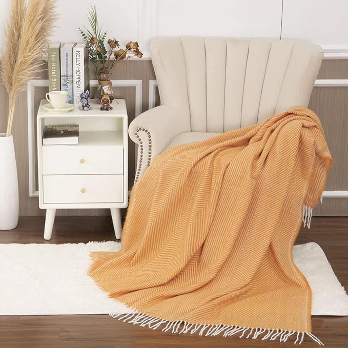 Gealaek Decorative Herringbone Faux Cashmere Throw Blanket Orange Cheveron Fringe Lightweight Fuzzy Soft Cozy Throws for Sofa Bed Farmhouse Throw Blanket 50" x 60"