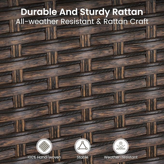 - Durable Wicker Chairs: Made of tightly woven weatherresistant rattan, UV & fade resistant, long service life for all seasons. Natural texture wicker material with strong wrapped edges, much more durable and stronger than most rattan chairs. Dimension: 24.4D x 22.4W x 34.3H.