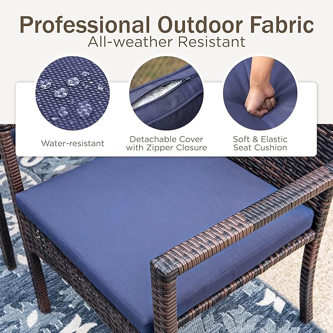 - Reinforced Tube Legs: Our wicker chairs use square metal tube legs, high density steel is strong and lightweight compared with others thin round tube legs which are easily wobbling and broken. Come with spongefilled cushion with waterresistant fabric cover, for easy clean and maintain.