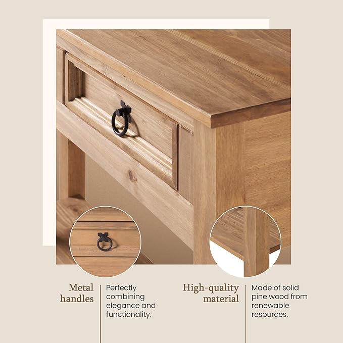 Solid Wood Console Table Corona with 2 Drawers 34.49" W, 12.64" D, 28.82" H - Farmhouse Entryway Table with Storage Shelf, Tables for Living Room, Hallway Foyer for Office & Bedroom