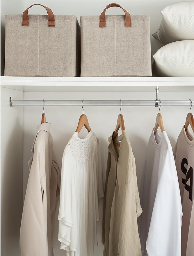 StorageWorks Storage Bins, Fabric Storage Bins for Shelves, Large Storage Baskets with Metal Frame, Closet Baskets and Bins with Handles, Brown and Beige, 2-Pack