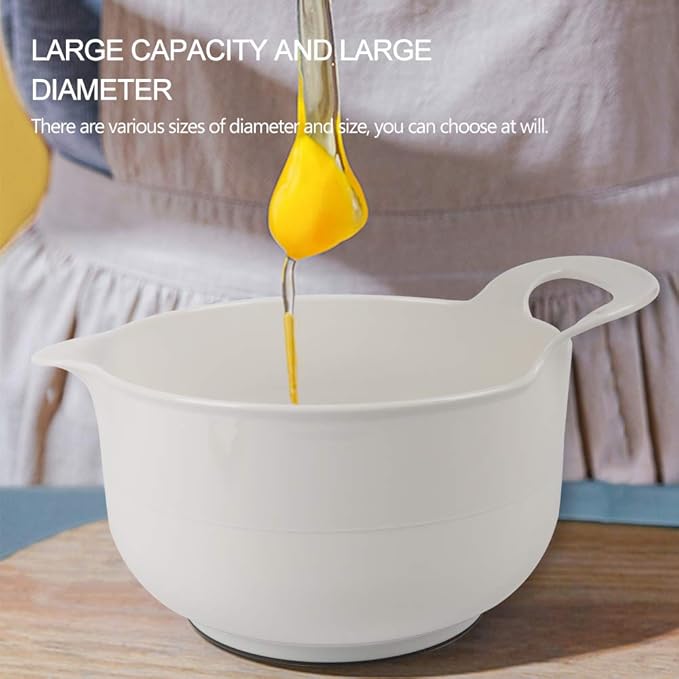 - Non-Slip & Non-Stinky: The rubber layer at the base will keep these batter bowls from skidding or slipping during mixing. Ingredients won’t stick with the bowl’s non-stick surface, making lengthy mixing less tiring.