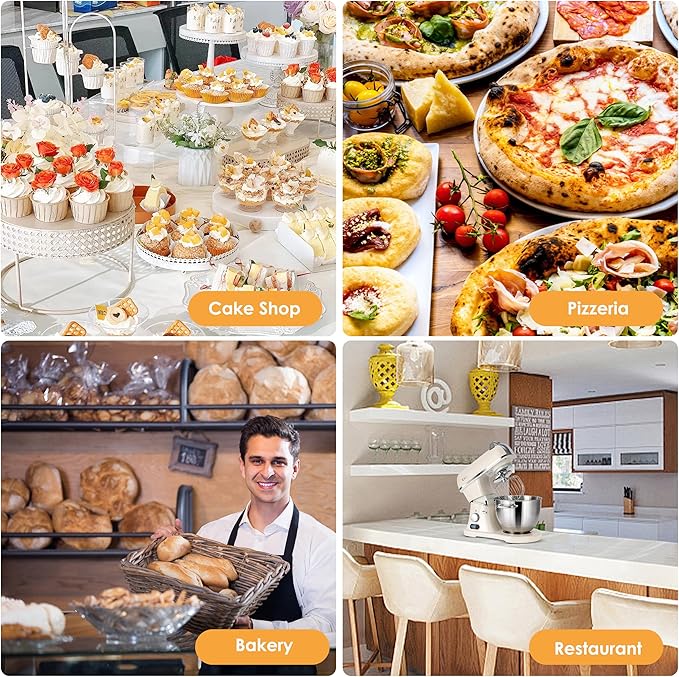 - High Capacity & High Efficiency: The maximum amount of dough is 3 kg/6.6 lbs/105.8 oz. Compared with other mixers, our 8.4 quarts commercial mixer is perfect for large families and bulk baking. It eliminates the need for repetitive mixing. Powered by a robust 800W DC motor, durable metal gears, and 11 levels of speed settings, it ensures efficient, high-intensity kneading with ease.