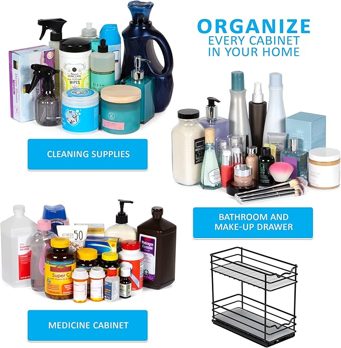 - SPICE CABINET ORGANIZER: Having limited space in your kitchen? Then our slide out kitchen spice rack organizer is the perfect solution to keep your spices tidy and within reach.