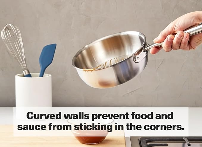 - PREMIUM 5-PLY COOKWARE: Elevate your culinary skills with Misen's 3-Quart Saucier Pan, a versatile addition to your Misen Kitchen. Crafted from 5-Ply Stainless Steel, this Misen sauce pan is compatible with gas, electric, and induction cooktops, and boasts a thick bottom for even heating. The ingenious curved bottom prevents food from getting stuck or burning which happens with more common pots.