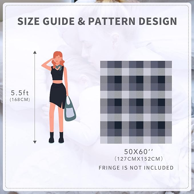 - ELEGANT DESIGN & PERFECT HOME DECOR: Our decorative knitted throw blanket is designed with classical buffalo plaid pattern which can add farmhouse touches to your house. Cute fringe ends make this chenille woven throw a perfect decor for your couch, sofa and bed.