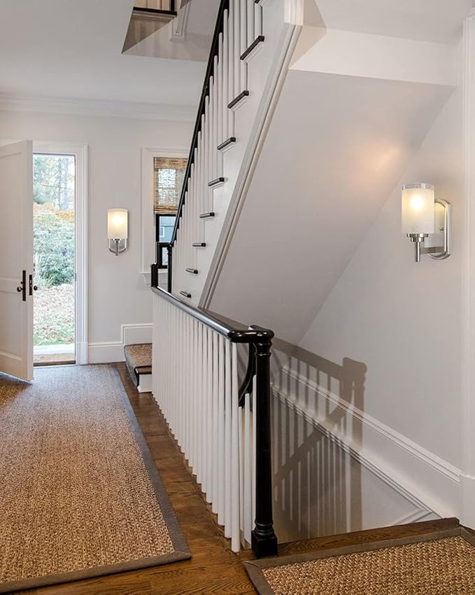 - ▶【Classic Wall Lights】The wall mount lighting fixture set of two is made of sturdy metal in brushed nickel finish, do not need to worry about getting fading after long time use. Combined with white frosted and clear glass shades, the light is soft and not dazzling, add an elegant decor for you indoor house.