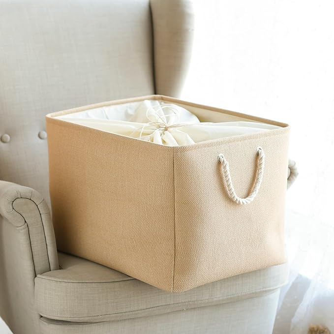 TheWarmHome Storage Bin for Shevles - Extra Jumbo 3Pack 20.5L×15.7W×13.8H inch Organization and Storage Basket for Organizing, Fabric Storage Cubes for Closet Shoe Linen Decorative (Beige)
