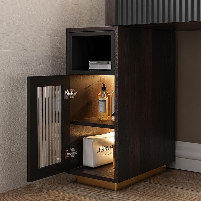 - đăOrderly and tidyă:Visible tempered glass countertop, with sensor light storage cabinets, no longer have to worry about finding items.