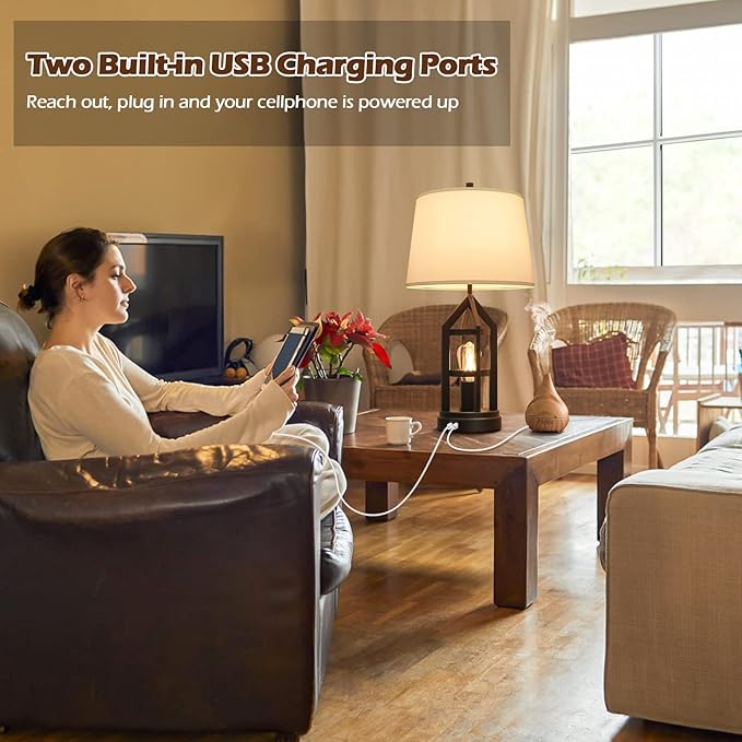 - 2 USB Charging Ports on Lamp Base: With a space-saving footprint and 2 built-in USB charging ports on the base, the table lamp is definitely a game-changer for nightstand or side table that has a small top. It takes up only a limited area of the desktop to provide abundant light and in the meantime acts as a convenient charging station to juice up your cellphone, ipad, kindle or other electronic devices