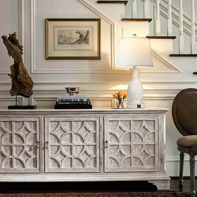 - USB C+A Ports: Our table lamps for living room set of 2 can charge two electronics simultaneously, such as mobile phones, earphones, tablets, kindle readers. What's more worth mentioning is that the charging function is effective regardless of the light is on or off. Add more convenience to your life.