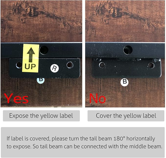 - Notice: The middle beam length of the full is 75.8'', and the queen & king's is 80.8''. When receiving a beam of the correct length but it cannot connect with the head or tail tightly, it is possible that the head bar or tail bar is installed incorrectly. Please make sure the label direction is "UP" and exposed, and check the wood board is on the correct side. If you encounter any difficulties with installation, please do not hesitate to contact us for the installation video