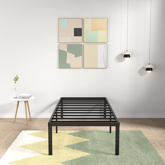 18 Inch Twin XL Bed Frame Heavy Duty No Box Spring Needed Metal Platform with Maximum Storage, Easy to Assembly, Noise Free, Black