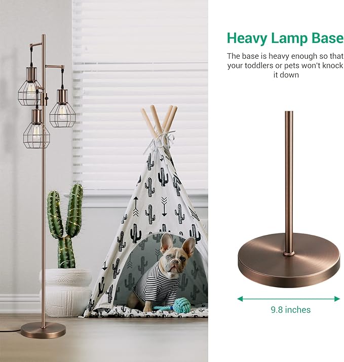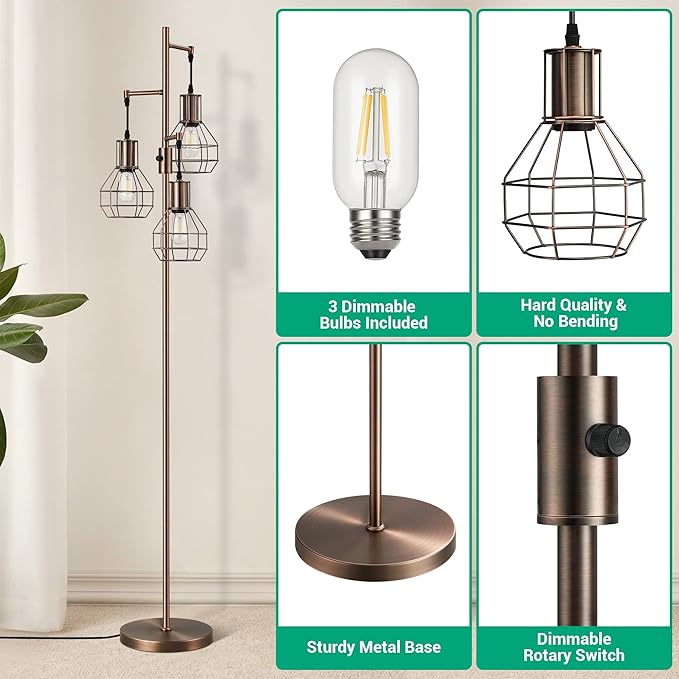 - 【ELEGANT & INDUSTRIAL DESIGN】Black finish, metal material, 3 elegant cages adds fashion and modern appearance to your home. The gorgeous industrial floor lamp is highly suited for any decoration style, such as modern, vintage, minimalist and so on. EDISHINE 3-heads floor lamp is an excellent choice for your home decoration
