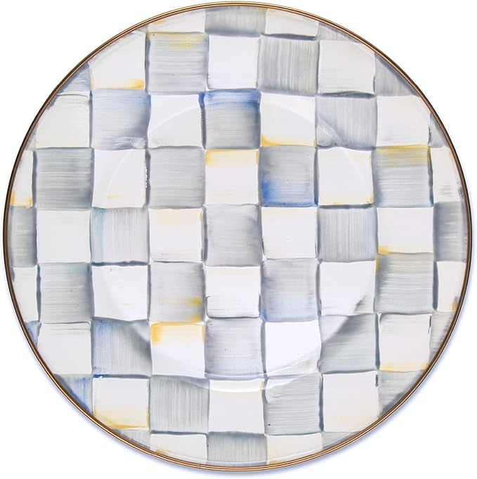 - ELEGANT SERVING ESSENTIAL: Our subtle Sterling Check plate is made with heavy-gauge steel and features gray-and-white checks and a bronzed stainless-steel rim. It’s a great addition to holiday dinnerware or an everyday dish set.