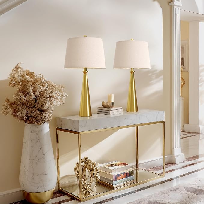Oneach 25.75" 3-Way Dimmable Touch Control Modern USB Table Lamp Set of 2 for Living Room Bed Room Bedside Nightstand Lamps Fabric Shade Vintage Accent Light Gold Antique Brass