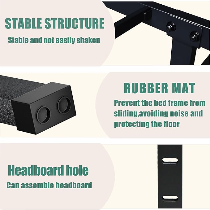 - Upgraded 2 Features:This heavy duty twin bed frame has Reserved Holes for mounting your desired headboard. Anti-Slip Rubber Pad to prevent the bed frame from sliding and protect the floor from scuffing