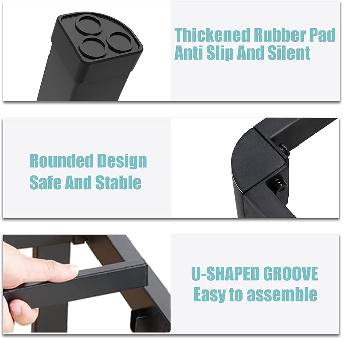 - Non-slip Design:The metal slat comes with four strips of tape to effectively reduce mattress slippage;the bottom of the bed foot comes with a layer of plastic plugs to prevent the bed frame from sliding