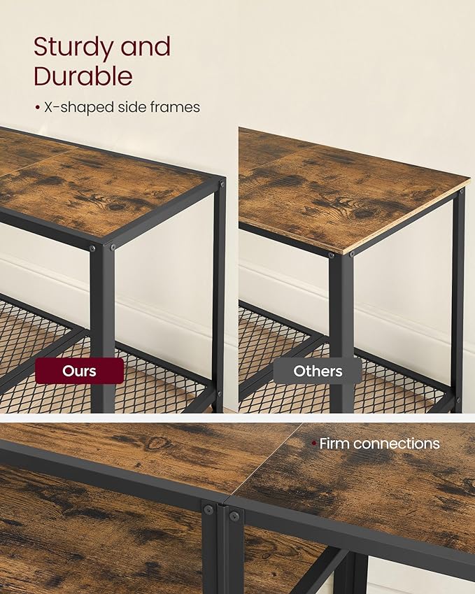 - [Durable to Last] Made of sturdy high-quality particleboard and a strong metal steel frame, this TV table can support weights up to 176 lb on the top, and 22 lb on lower shelves. 70”L x 15.7”W x 19.7”H to support large TVs for years to come