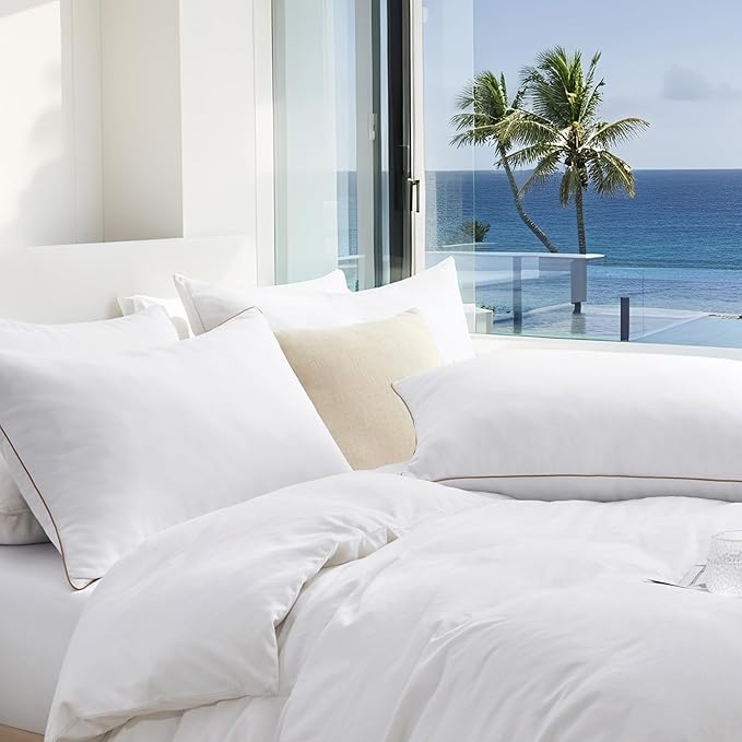 - PREMIUM MATERIAL - Our goose feather pillows is made of 100% cotton cover, the soft and breathable white cover is skin friendly. High-density down-proof double fabric lining can effectively prevent inner down and feather from leaking out. Soft to the touch, and supportive to the feel, each pillow is made for long-lasting durability and comfort.