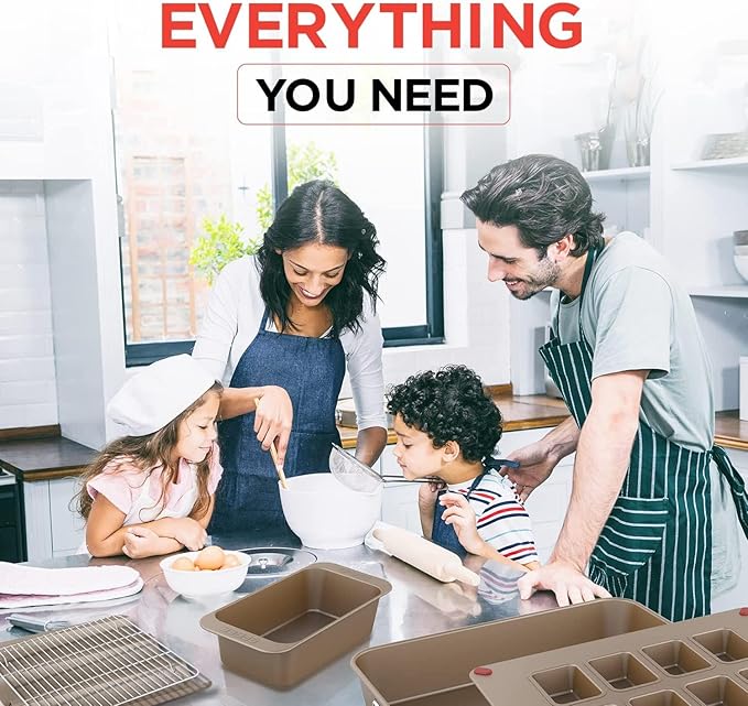 - A BAKER'S DREAM - Kickstart your bread baking aspirations with this all-in-one bread pan baking set. You’ll never have to hunt for missing baking pans again, all the pieces stack neatly into each other, due to our patent-pending nestable design
