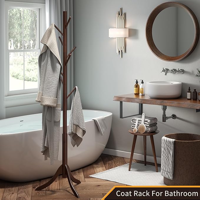 - 【Made from Bamboo and Wood】Bamboo is an incredibly sturdy material, and our bamboo coat rack, crafted from this robust substance, boasts exceptional load-bearing capabilities and a long lifespan