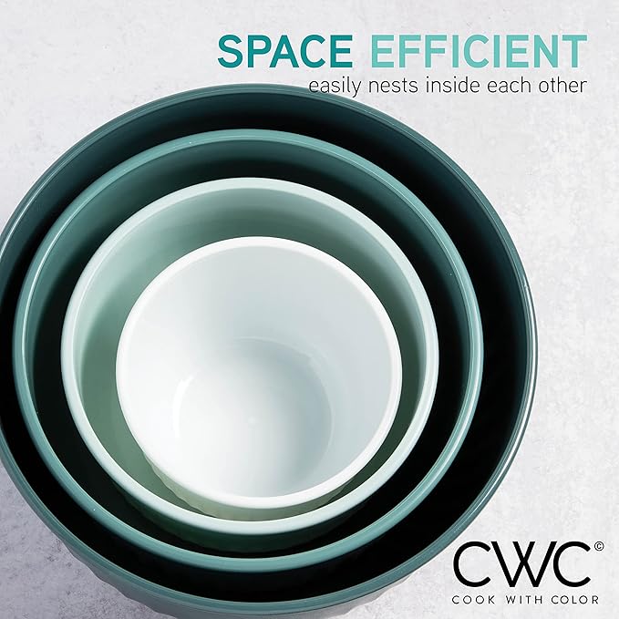 COOK WITH COLOR Prep Bowls with Lids- Wide and Deep Nesting Plastic Small Mixing Bowl Set with Lids, 8 Piece Set - Wide Bowls, Teal