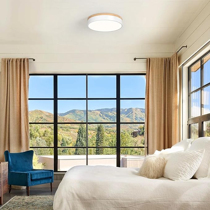 - Modern & Simple Design: 24 W LED Dimmable light fixtures ceiling mount lamp framed by oak wood and metal, the light cover is high transmittance acrylic. Drum flat minimalist style with protable easy install. As equivalent to 200-250 W traditional incandescent light