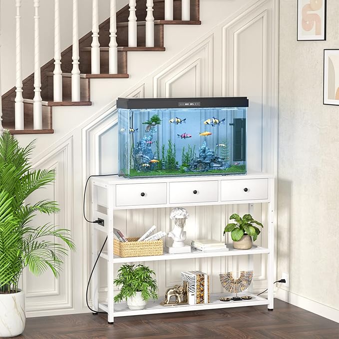 - Modern Style & Multiple Functional - The storage console table for entryway can fit any spot. This white elegant sofa table has totally 3 drawers and 3 open tiers for display and storage. You can use it as an entryway table with shoe storage, couch table, foyer table, front door table, TV console table, gaming console table, aquarium stand, plant stand, window table, coffee bar table, hallway table.